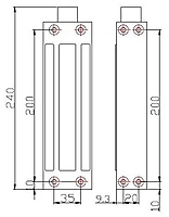 Elektromagneet 5400N IP67. Een elektromagnetische deurvergrendeling ip67, werkend op ruststroom (spanningsloos ontgrendeld). De magneet is opgenomen in een RVS behuizing. Het magneetveld zelf is door een nylon coating beschermd. Geschikt voor buitendeuren. Door ontbreken van bewegende delen een hoge mate van betrouwbare werking. Door opbouw en werking van vlakke delen op elkaar is deze vergrendeling minder gevoelig voor bouwkundige onvolkomenheden. Geschikt voor het controleren van personenverkeer. Ook geschikt voor hoogfrequent gebruik. Vlakke ankerplaat dient flexibel te worden opgehangen en wordt in bedrijf bij het sluiten van de deur aangetrokken door de elektromagneet. Deze magneet is standaard voorzien van een potentiaalvrij signaleringscontact die detecteert of de ankerplaat is aangetrokken. ( OC550RVS voor heen de OC540RVS)