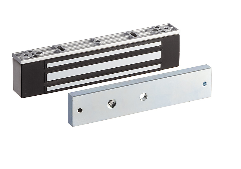 Maasland Elektromagneet waterdicht IP67 17WPM Smalle waterdichte vergrendeling bestaande uit een magneet en een ankerplaat geschikt voor buitenmontage. Als de ankerplaat tegen de magneet aan wordt gedrukt en de spanning staat op de magneet dan vergrendelt deze. Door de spanning te onderbreken wordt de magneet ontgrendeld. Standaard voorzien van spoelsignalering. Geschikt voor 12V= en 24V= en horizontaal of verticaal te monteren. Montagegaten aan de bovenzijde van de magneet.