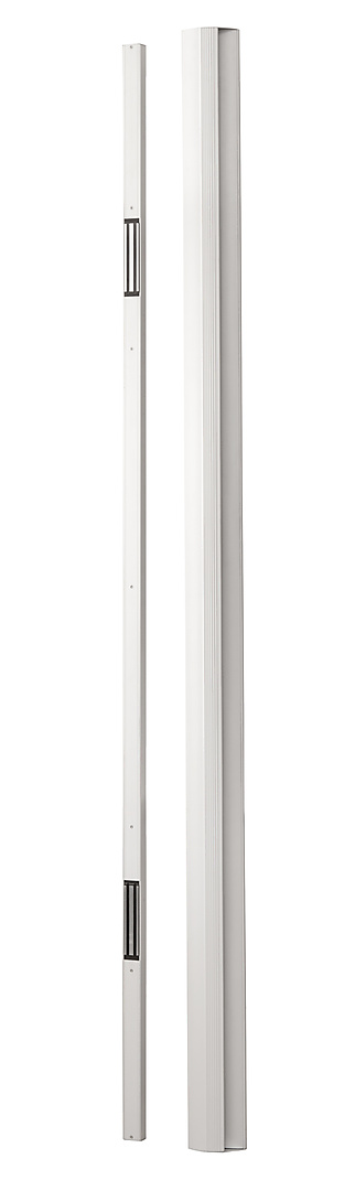 Opbouw magneetbalk met 2 magneten 17DGMDT van Maasland. Esthetische vergrendeling bestaande uit een dubbele magneet met 2.720 N houdkracht per magneet en een geanodiseerde aluminium deurgreep waar de ankerplaten verborgen in zijn weggewerkt. De magneet wordt verticaal op het kozijn geplaatst, de deurgreep met ankerplaten verticaal op de deur. Als de ankerplaat tegen de magneet aan wordt gedrukt en de spanning staat op de magneet dan vergrendelt deze. Door de spanning te onderbreken wordt de magneet ontgrendeld. Standaard voorzien van spoel- en deurstandsignalering en timer. Geschikt voor 12V= en 24V=