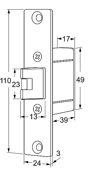 Deze compacte en sterke losse inbouw dagschoten kunnen tegenover een elektrische dagschootopener worden geplaatst als er geen mechanisch slot aanwezig is of ter vervanging daarvan. Behuizing is uit één stuk aluminium en voorplaat en schoot vervaardigd uit roestvast staal. De dagschoot is niet draairichtingsgevoelig dus toepasbaar voor links- en rechtsdraaiende deuren.