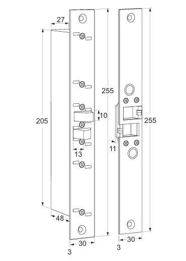 De Maasland ML820 elektrische sloten kunnen via een toegangscontrolesysteem of andere elektrische impulsgever worden ontgrendeld. Er is slechts één model voor alle deursituaties dus geschikt voor links- en rechtsdraaiende deuren, horizontaal en verticaal te monteren, 12 en 24V DC, arbeidsstroom en ruststroom en standaard voorzien van dubbele signalering. De sterke rvs schoot is niet terug te duwen als de deur is vergrendeld (niet te “flipperen”), zorgt voor een houdkracht van 10.000 N, opent onder 6.000 N zijdelingse druk en trekt tot 8 mm automatisch de deur dicht. Geschikt voor doordraaiende deuren.