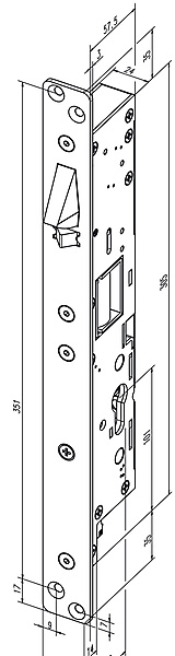 L4844 Technilock, L4 electrische grendel, cilindersparing 17mm, 24V=. Zonder sluitplaat.