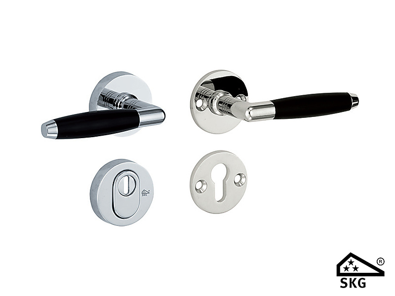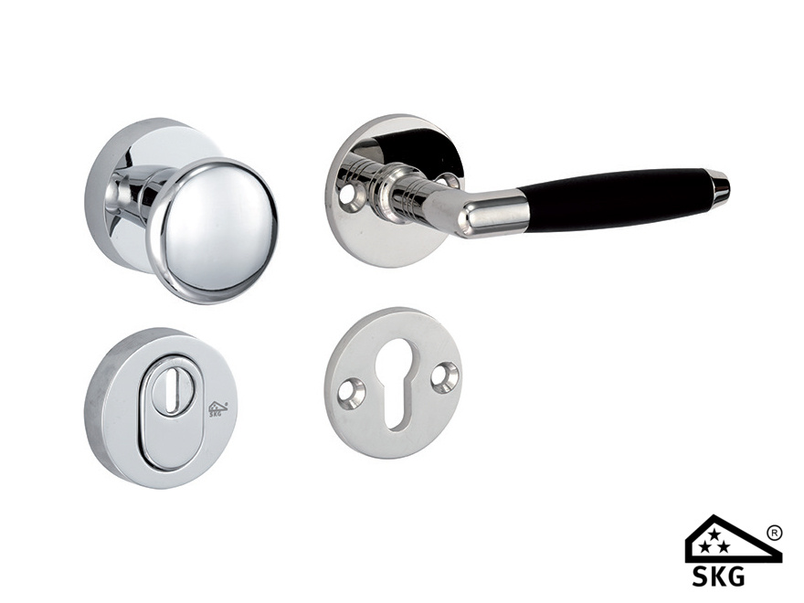 Mi Satori SKG*** kruk- of knop garnituur links/rechts met kerntrekbeveiliging PC72. Model Ton Ebben. In glans nikkel ebben / glans chroom van Misatori