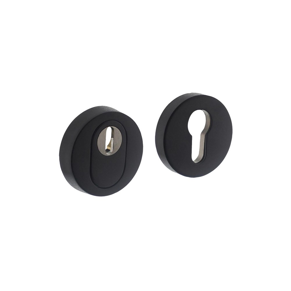 Ronde veiligheidsrozetten zwart. Deze set ronde veiligheidsrozetten met een extra bescherming tegen inbraak is SKG*** gekeurd. Het veiligheidsbeslag is vervaardigd uit roestvast staal en uitgevoerd in mat zwart. Voorzien van kerntrekbeveiliging, waardoor de cilinder wordt beschermd tegen het uittrekken en uitboren van de cilinderkern. Kerntrekbeveiliging is sinds eind 2013 verplicht in nieuwbouw en sinds april 2014 ook voor bestaande bouw. Het veiligheidsbeslag is daarnaast SKG*** gekeurd, wat betekent dat het om extra zwaar inbraakwerend beslag gaat.