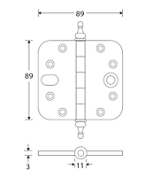 Kogellagerscharnier SKG3 89×89 ronde hoek vaas Mi Satori SKG*** scharnieren. Afwerking met vaas. Veiligheidsscharnier van Misatori