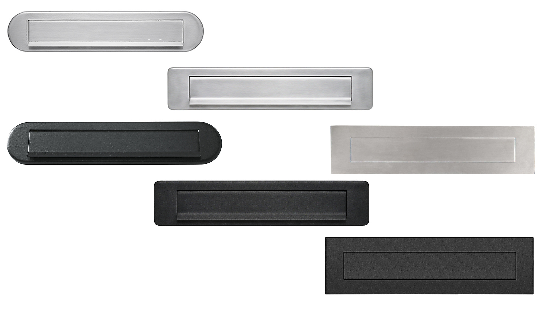 De briefplaat is verkrijgbaar in zowel het mat RVS als in het zwart. De modellen komen uit verschillende series van Wallebroek: