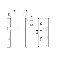 Buitenschild 12 mm met deurkruk 353 vastdraaibaar,