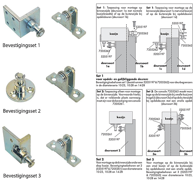 Bekijk bij downloads de besteltekst om de juiste selectiekeuze deurbegrenzer voor u te bepalen.