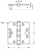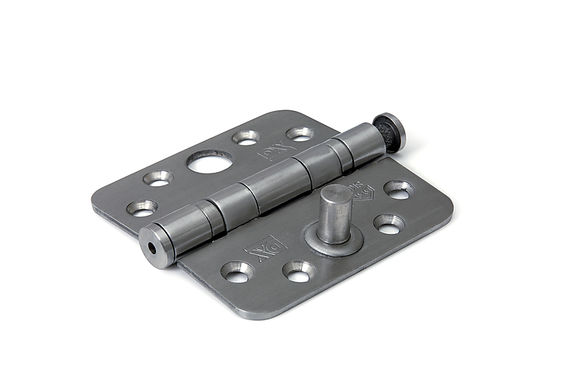 Kogellagerscharnier ronde hoeken SKG3 89x89 mm RVS geborsteld. Dit CE gecertificeerde DX veiligheidsheidsscharnier is door zijn geïntegreerde dievenklauw door het SKG gekeurd en bestempeld als inbraakwerend. Het scharnier is gemaakt van roestvrijstaal (RVS) en in combinatie met het SKG keurmerk daarom uiterst geschikt voor buitendeuren die intensief gebruikt worden. Het product voldoet aan alle eisen om binnen het Politie Keurmerk Veilig Wonen (PKVW) toegepast te worden. Door zijn ronde hoeken is dit scharnier uitermate geschikt om machinaal te verwerken. Met een freesmachine kan de uitsparing in deur/raam en kozijn gemaakt worden. Roestvaststaal (RVS) heeft tevens een chique uitstraling. Aan de onderkant is een scharnierknop bevestigd wat het al chique RVS uiterlijk nog verder verrijkt doordat boven en onderkant nu identiek ogen. In deze scharnierknop is een klein gaatje aangebracht, wat er voor zorgt dat demonteren, bijvoorbeeld wanneer u gaat schilderen, eenvoudig blijft.