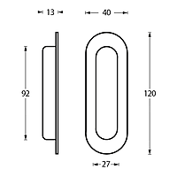 Schuifdeurkom ovaal 120x40mm RVS (fr)