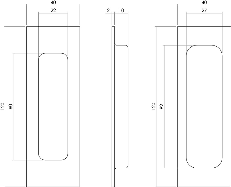 Schuifdeurkom rechthoekig 120x40mm Zwart Deze rechthoekige schuifdeurkom is vervaardigd uit roestvast staal en daarna voorzien van een mat zwarte poedercoating. Door het gebruik van rvs heeft deze kom een lange levensduur. Deze schuifdeurkom valt geheel in de deur en heeft een hoogte van 120 mm en is 40 mm breed.