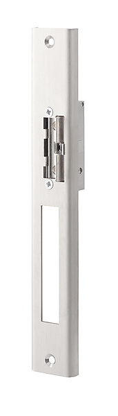 Elektrische deuropener met geïntegreerde schootgeleider die in het kozijn, tegenover de dagschoot van een mechanisch slot wordt ingebouwd, om deze te vergrendelen of te ontgrendelen. De schootgeleider duwt de dagschoot uit de schootvanger van de elektrische deuropener zodat, zonder lelijke uitsparingen in het kozijn, de deur kan worden ontgrendeld. De lange sluitplaat is speciaal gemaakt voor de Alprokon Prefab 2000 deurnaald.