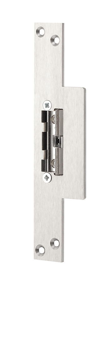 Elektrische deuropener met geïntegreerde schootgeleider die in het kozijn, tegenover de dagschoot van een mechanisch slot wordt ingebouwd, om deze te vergrendelen of te ontgrendelen. De schootgeleider duwt de dagschoot uit de schootvanger van de elektrische deuropener zodat, zonder lelijke uitsparingen in het kozijn, de deur kan worden ontgrendeld. De korte lipsluitplaat is geschikt voor houten kozijnen.