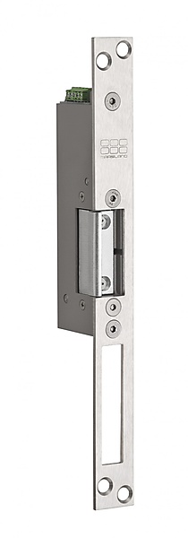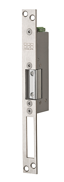 Robuuste elektrische deuropener die in het kozijn tegenover de dagschoot van een mechanisch slot wordt ingebouwd om deze te vergrendelen of te ontgrendelen. Door de speciale constructie ontgrendelen deze modellen onder zijdelingse druk waardoor ze geschikt zijn voor vluchtdeuren of andere situaties waarbij druk op de dagschoot komt. De lange sluitplaat heeft een uitsparing voor de nachtschoot, zodat deze mechanisch kan worden vergrendeld.