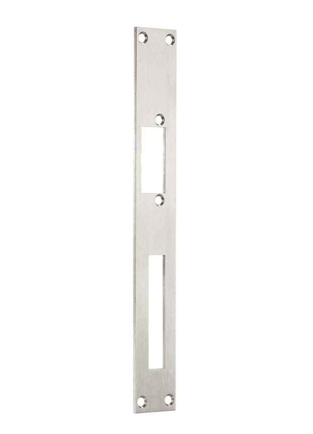 HZF Voorplaat voor deuropeners met schootgeleiding. RVS sluitplaat met schootgeleiding 3mm vlak universeel Linke en rechts toepasbaar nachtschoot uitsparing voor PC 55/72/92mm, metalen kozijn