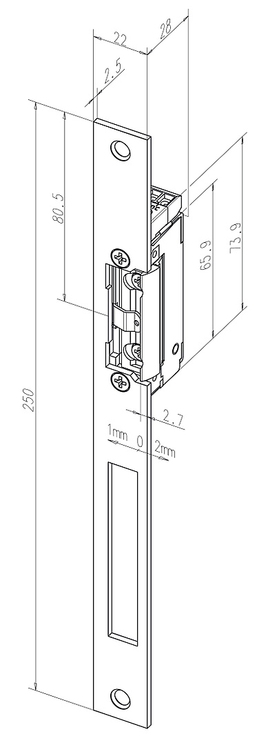 128----43401A71 en 128----43435A71 Elektrische inbouw deuropener type 128 met lange vlakke sluitplaat