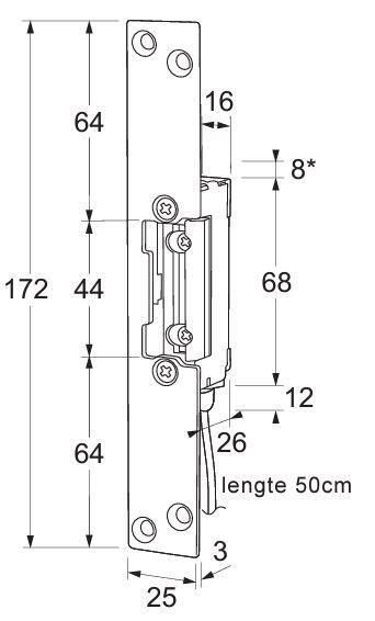 Maasland elektrische deuropener waterdichte IP68. speciaal voor buiten toepassingen als voordeuren garagedeuren en poorten. De waterbestendige deuropener wordt tegenover het mechanische slot ingebouwd om zo de dagschoot te ver- of ontgrendelen. De lange sluitplaat heeft een uitsparing voor de nachtschoot, zodat deze mechanisch kan worden vergrendeld.