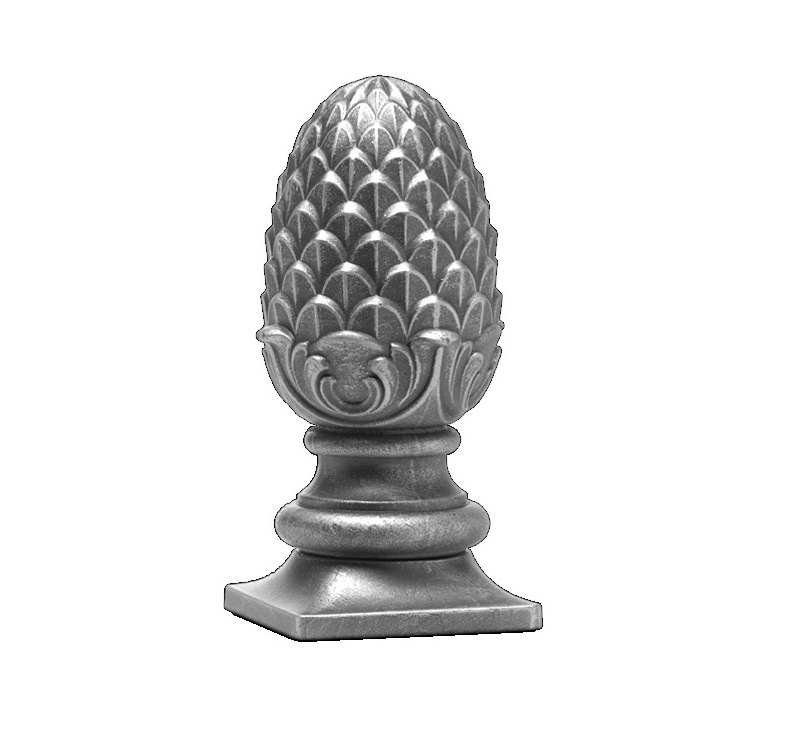 Grande Forge Paalkop granaatappel met vierkante voet in massief staal. Toepasbaar voor poorten. Verkrijgbaar in diverse maatvoeringen