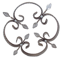 Sierornament met sierkrullen en blaadjes van smeedijzer. Een mooie toevoeging op uw hekwerk.