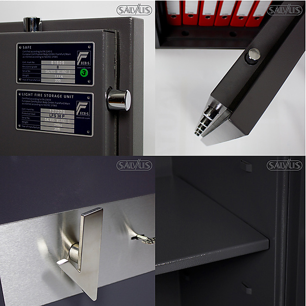 Inbraakwerende en brandwerende kluis de Salvus Milano is ontworpen om uw waardevolle zaken en documenten tegen inbraak en brand te beschermen. De Salvus Milano biedt maar liefst 30 minuten gecertificeerde brandwerendheid. Geleverd met elektronisch codeslot of met sleutelslot.