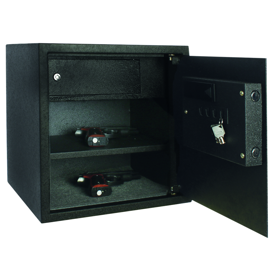 Domestic pistolenkluis Protector De Raat. biedt de mogelijkheid om uw wapens veilig op te bergen. Door het afsluitbare binnenvak in combinatie met het elektronisch cijferslot is de kluis gemakkelijk in gebruik en kunnen wapens en munitie veilig worden opgeborgen. Wapenkluis is voorzien van een unieke geblokkeerde solenoid ter bescherming tegen manipulatie