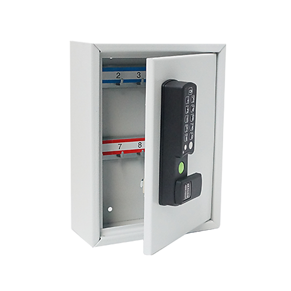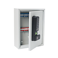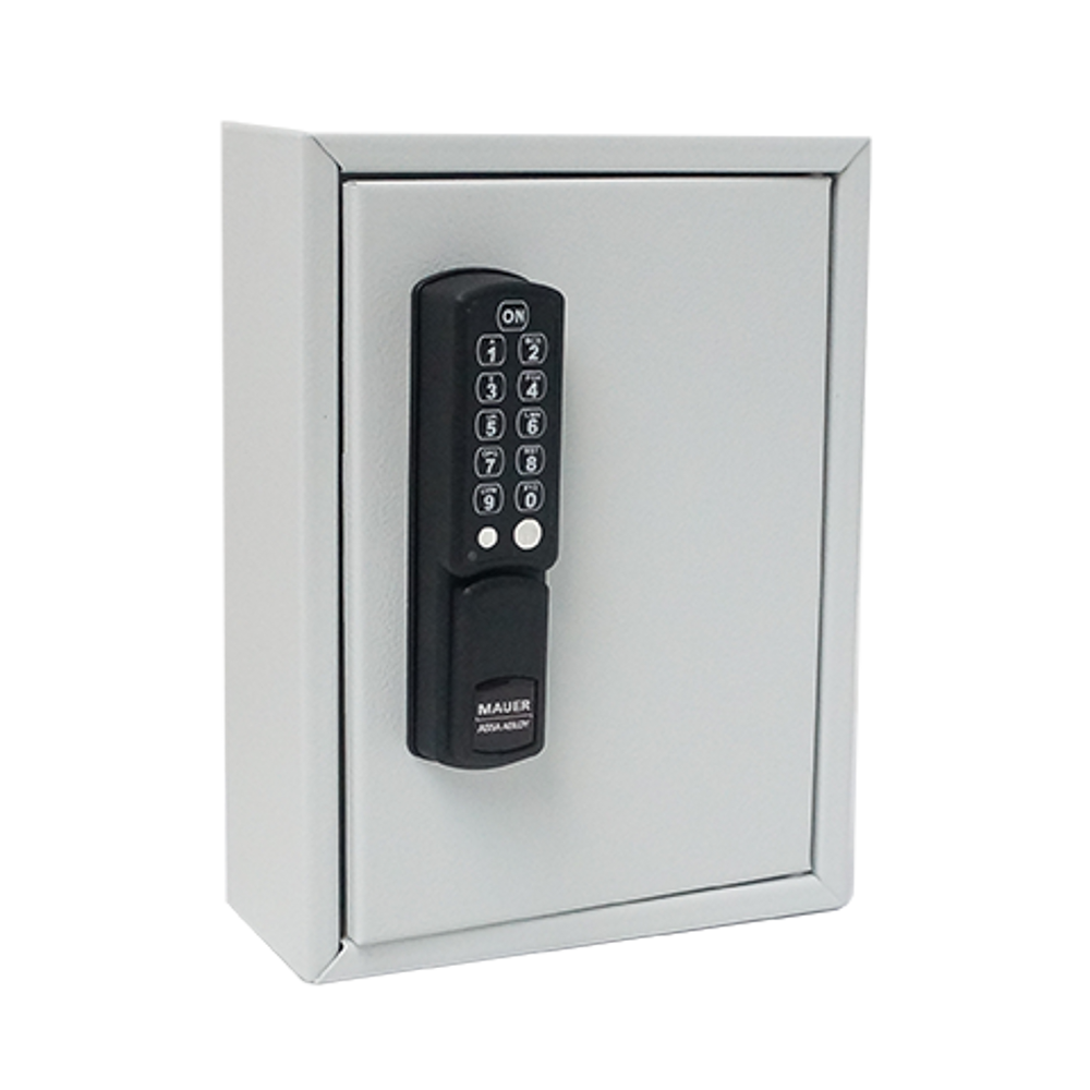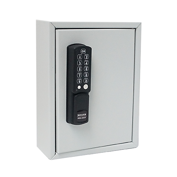 MAUER Sleutelkast met pincodeslot ESL-CAM met 10 HAKEN. Sleutelkluis bestaat uit 2mm dik plaatstaal voorzien van poedercoating RAL 7035 en is uitgevoerd met Mauer ESLcam lockerslot