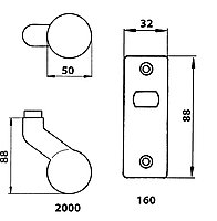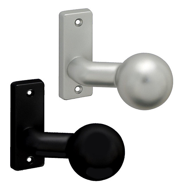 Bolkruk vast of draaibaar op kortschild voor poortsloten. Verkrijgbaar in zilver of zwart.