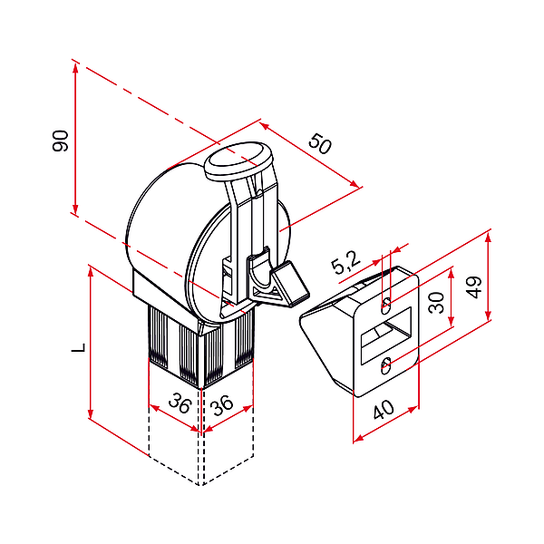 | Afm. aluminium paal van 40x40mm lengte 36cm | |