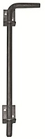 Zwarte grondgrendel 400mm met 2 geleiders voor het vast zetten van deuren en poorten met de pen vastgezet in de grond. Lengte poortgrendel 400mm. Ruime keuze zwarte poortgrendels.