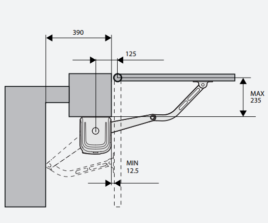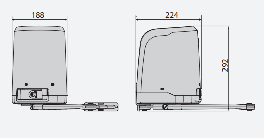 Onomkeerbare 24 Velektromechanische aandrijving voor draaipoorten met een gewicht tot 200 kg en tot 2 m lang, met geïntegreerde besturingseenheid.
