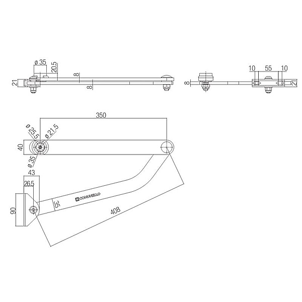 Met precisie en duurzaamheid in gedachten vervaardigd, vergemakkelijkt deze hendel het openen en sluiten van de vleugel met minimale inspanning. Met de gearticuleerde hendel geïnstalleerd, kunnen gebruikers verbeterde toegankelijkheid en gemak ervaren bij het bedienen van de CONDOR 220 en 350 motoren, waardoor de algehele efficiëntie en prestaties in poortautomatiseringssystemen worden verbeterd. De maatvoering is te vinden op de tweede afbeelding.
