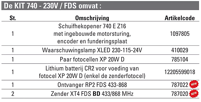 Faac 740 kit bestaande uit: