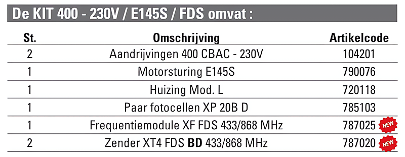 Faac KIT 400 Hydraulische poortaandrijving 230V (fr)