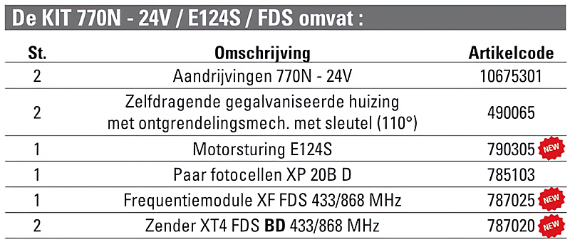 Faac KIT 770N ondergrondse elektromechanische poortaandrijving FAAC KIT 770N - 24V of 230V automatiseringskit voor porten met vleugels van maximaal breedte enkele vleugel: 2 - 3,5 m (met elektroslot) en maximaal gewicht: 500 kg