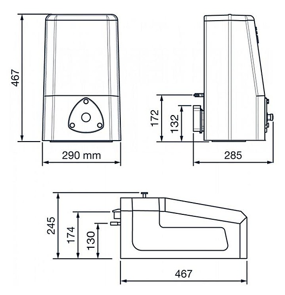 Fadini MEC 200 schuifpoortopener – 1,5 PK – 380V of 1 PK, 230V. Robuust en stevig voor zware industriële poorten, met magnetische rem, aircooling, excl. sturing.