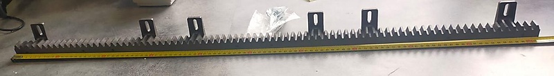 Tandheugel V6 ondermontageToepasbaar voor schuifpoorten. De V6 tandlat is vervaardigd van grijs nylon (module 4) met een stalen kern. De tandheugel is 1 meter lang, geschikt voor ondermontage en tot 800 kg. De tandheugel is voorzien van 6 bevestigingspunten en wordt geleverd met een set bevestigingsmateriaal