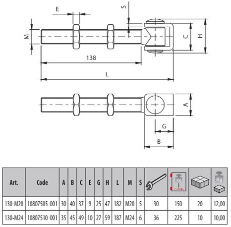 Scharnieren lang 90° verzinkt M20 - M24 (fr)
