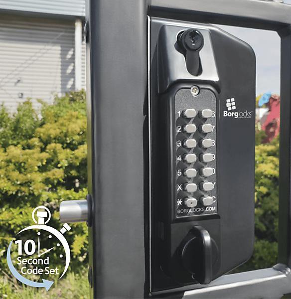 Dubbelzijdig codeslot voor metalen poorten BL3130 van Broglocks – Metalen poortslot met back-to-back anti-klimknop draaibare ECP-toetsenborden. Het BL3000 poortslot combineert een speciaal ontworpen inbouwslot met een toetsenbord van maritieme kwaliteit serie is ontworpen voor poorten met metalen kokerprofielen. De BL3130 wordt geleverd met back-to-back toetsenborden, die een code nodig hebben om zowel naar binnen als naar buiten te gaan. Optioneel met een sleutelcilinder die zowel sleuteloverbrugging als een nachtschootbediening mogelijk maakt met behulp van een sleutel. Dit model wordt geleverd met een draaiknop en een Easicode Pro-codewisselmechanisme, waardoor de code snel op de deur kan worden gewijzigd.