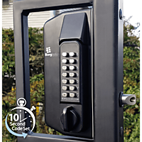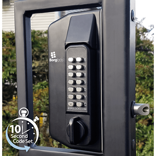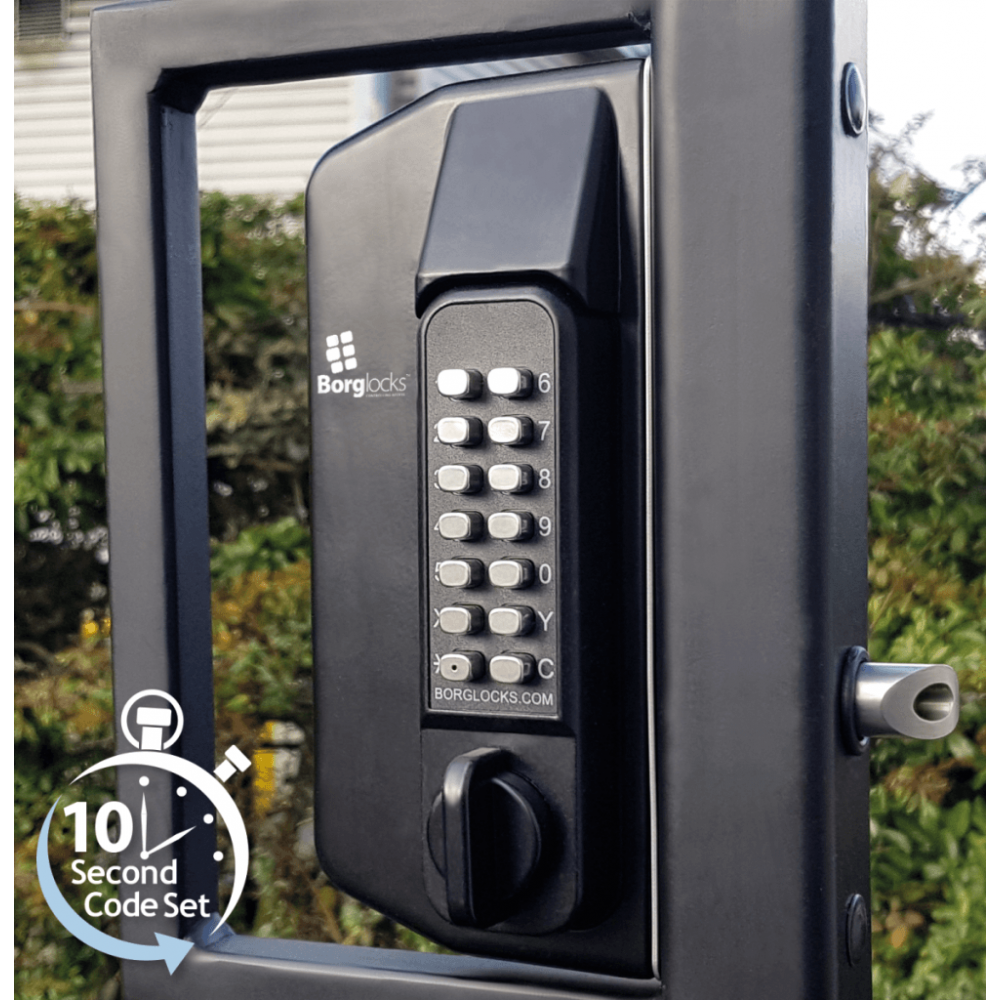 Enkelzijdig codeslot voor metalen poorten met anti-opklimknop BL3100 ECP van Borglocks. Draaibaare knop en ECP-toetsenbord aan de buitenzijde met peddelhandgreep aan de binnenzijde. Optioneel verkrijgbaar met mogelijke sleuteloverbrugging. De BL3000 combineert een speciaal ontworpen inbouwslot met een Marine Grade Pro-toetsenbord. Gate lock-serie is ontworpen voor poorten met metalen kokerprofielen. Als extra functie kan dit slot geleverd worden met een sleutelcilinder ingebouwd in de vergrendeling, waardoor een nachtschootfunctie en een sleuteloverbrugging mogelijk is. Dit model wordt geleverd met een knopdraaimechanisme en een Easicode Pro-codewisselmechanisme, waardoor een snelle en eenvoudige wijziging van de code mogelijk is.