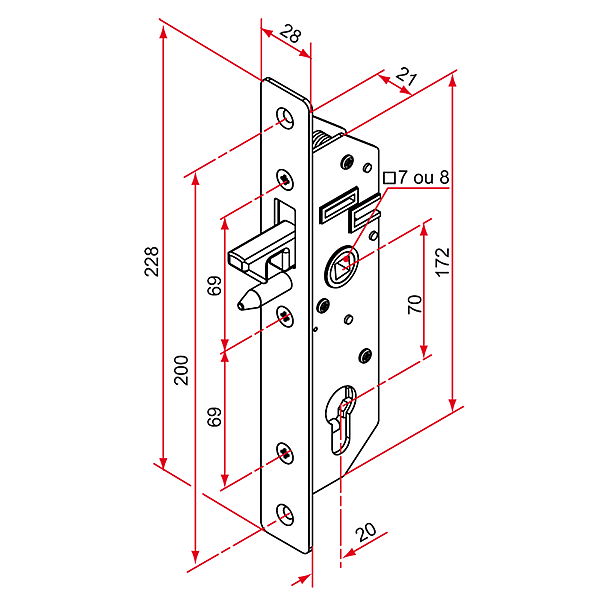 Schuifpoortslot met hefbout doornmaat 20mm (fr)