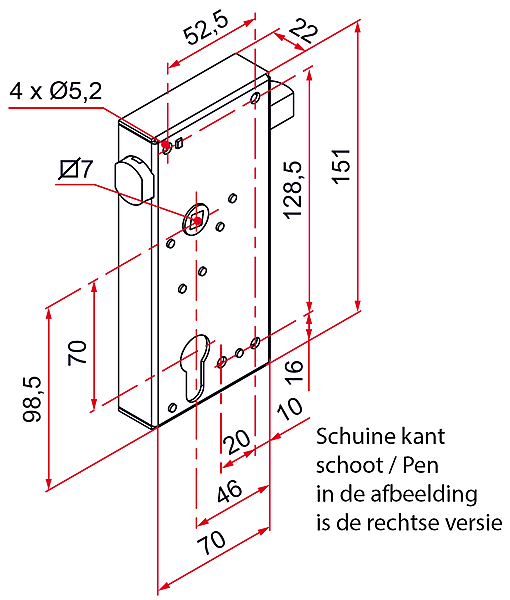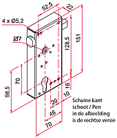 (Let op verschil links en rechts i.v.m. de schuine kan van de pen Zie de maattekening voor verduidelijking van de draairichting)