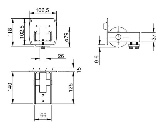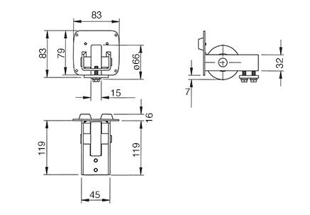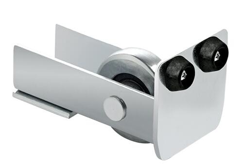 Comunello eindwiel 347 voor vrijdragende poorten aluminium verkrijgbaar in 2 uitvoeringen. Een nylon eindwiel verlengt de levensduur van de vrijdragende schuifpoort