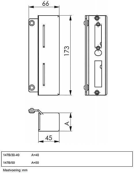 | Kastbreedte 40 of 50mm |