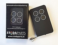 Wanneer u onze universele stedaparts zender selecteert en besteld en niet de originele dan krijgt u onze zwart met witte stedaparts zender met 4 drukknoppen / kanalen.