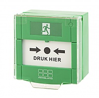 Met bijgeleverde sleutel is de nooddrukker vervolgens weer eenvoudig te resetten. Het vervangen van het witte plaatje is dus niet nodig. Voorzien van dubbel wisselcontact. De handmelder is standaard voorzien van een kunststof afdekraam om ongeoorloofd gebruik van de handmelder tegen te gaan.