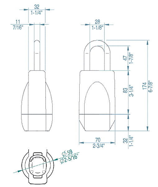 | Afmeting behuizing (70 x 174 x 32 mm) | |