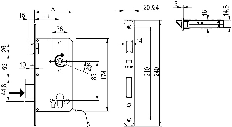 Zie bestektekst voor de afmetingen en de verdere verschillen tussen de Salto insteeksloten.