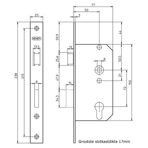 | Afmeting voorplaat 238 x 25 mm | |