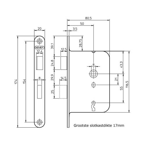 Nemef 1366 Klavier insteek dag- en nachtslot