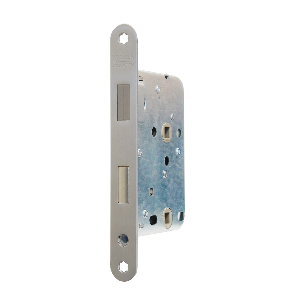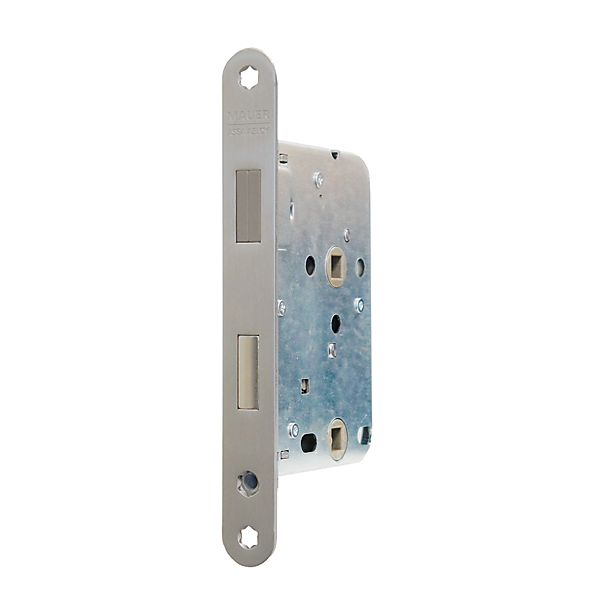 MAUER 1545 BAD/WC RVS magneetschoot zonder sluitplaat. Het hoogwaardig afgewerkte slot met magneetschoot 1545 BAD/WC is geschikt voor binnendeuren. Het slot heeft een zeer soepele werking. De voorplaat is vervaardigd van een hoge RVS-kwaliteit 304. De deur sluit naadloos door de magnetische werking. Bij het dichttrekken van de deur, schiet de dagschoot in de gecombineerde sluitplaat/kom. Kleding kan hiermee niet achter de dagschoot blijven haken. Bediening van de deur gebeurt met de deurkruk. In geopende stand is de dagschoot niet zichtbaar, want deze blijft dan ingetrokken. Hierdoor blijft het kozijn glad en komen er geen beschadigingen aan het kozijn.